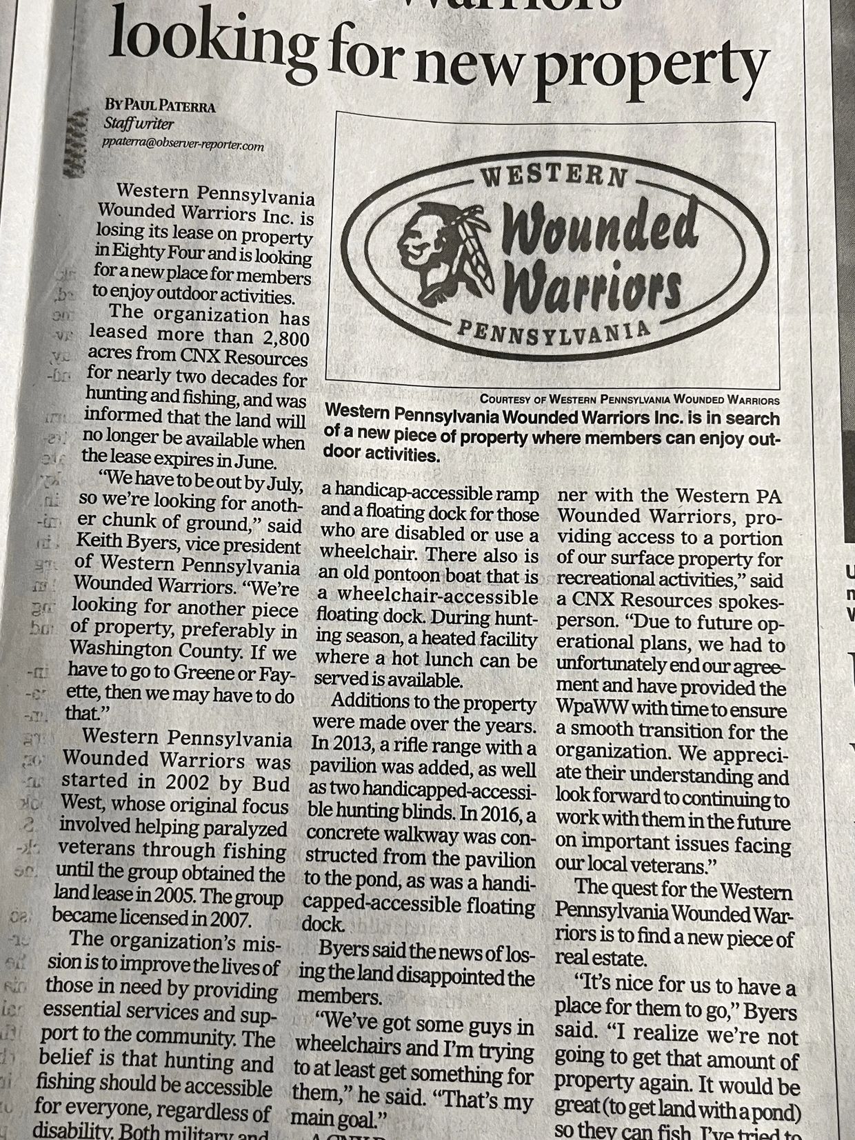 In 2002, Bud West founded the Western Pennsylvania Wounded Warriors. The original focus was helping paralyzed veterans through fishing until the group obtained the land lease in 2005. In 2007, the group became incorporated. Sadly, in 2010 Bud passed away, but his legacy lives on through the work of our amazing volunteers and strong Board of Directors.